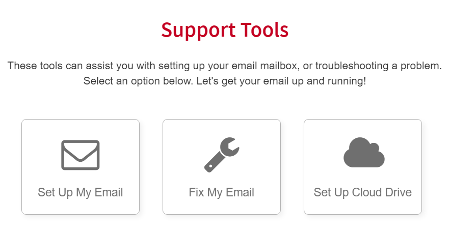 Under Support Tools, tap Set Up My Email.