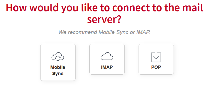 When asked “How would you like to connect to the mail server?”, tap the Mobile Sync button.